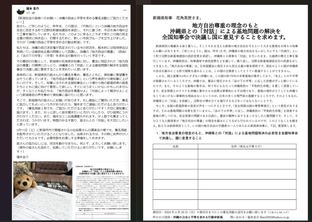 また、現在辺野古新基地建設に於いては国の代執行と言う異常事態によって建設が強行されていますが、本来対等とされる国と地方自治体との関係が沖縄では県民の意思を無視する形で破壊されています。