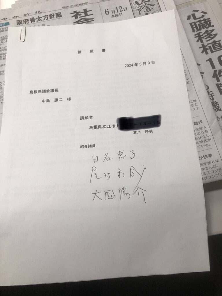 八郎潟町議会にて陳情が採択されました。(3月15日)