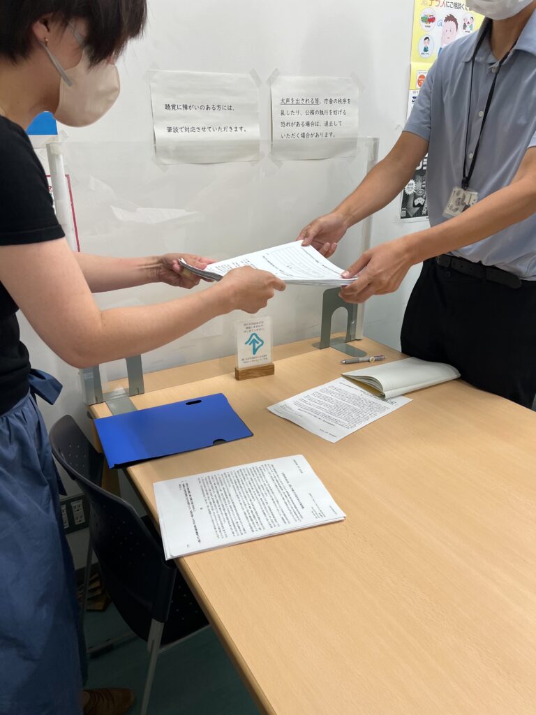 秋田県庁にて要請書と署名を手交しました。(7月12日)